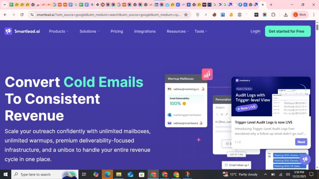 Best feature: Unlimited email accounts from the base plan. Most cold email tools charge $5-10 per account. Saleshandy includes them all.