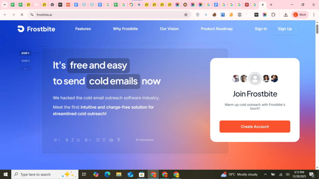 Frostbite gives you 5 email accounts for free. Forever. No trial period, no credit card tricks.