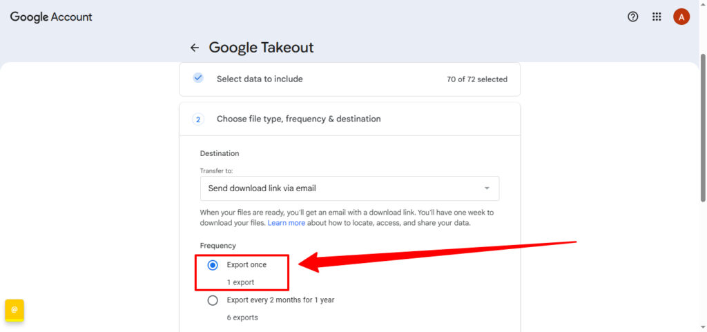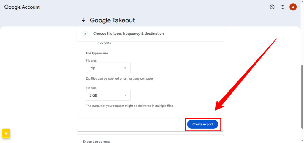 Step 4: Choose “Export once” and select file type (.zip works for most)
