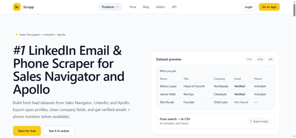 What sets it apart: Automatic data cleaning. Removes emojis, fixes company names, deletes low-quality profiles automatically.